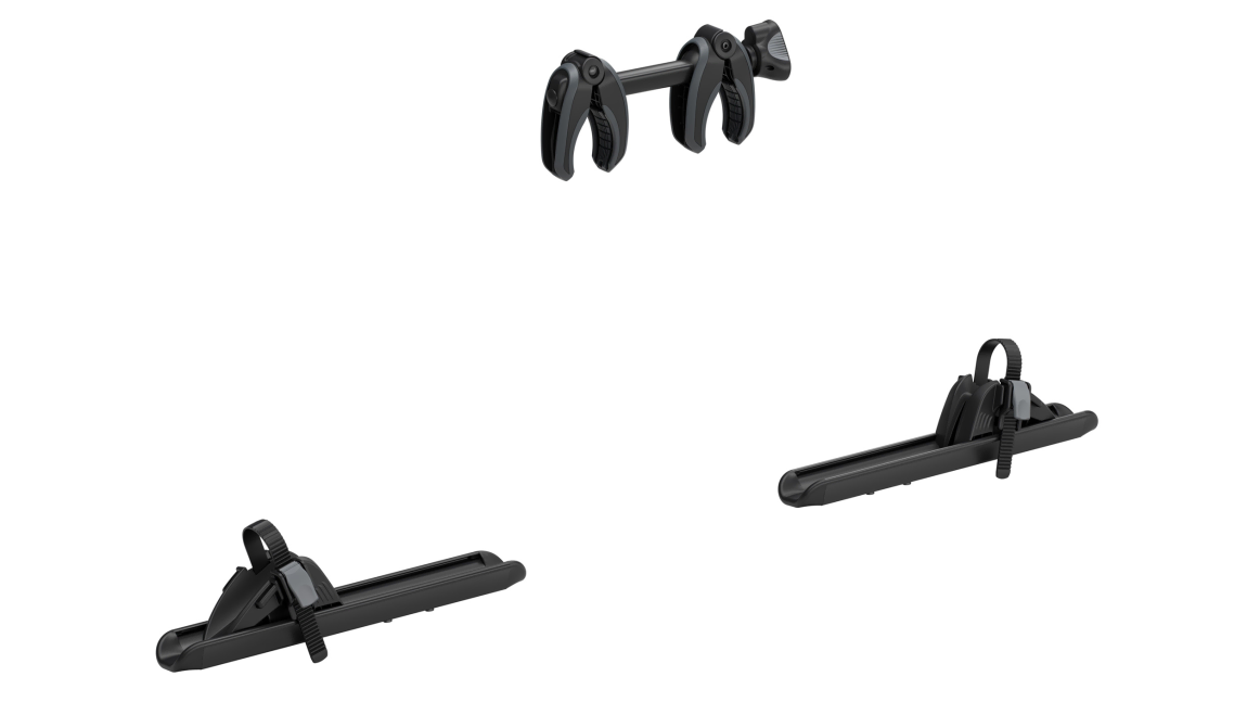Fitting a bike into the 4th Bike Adapter is simple, the wheel trays can adjust to fit a range of bicycle wheelbases with ratcheting pump buckle straps which secure your bikes wheels into place. A frame to frame securing clamp with torque limited Acu-Tight claw clamps fit between the frame of the bike being mounted and the bike in the 3rd bike adapter, clicking off when secure and reducing the risk of overtightening. This frame to frame claw clamp is lockable when fastened providing great bike security when in transport.