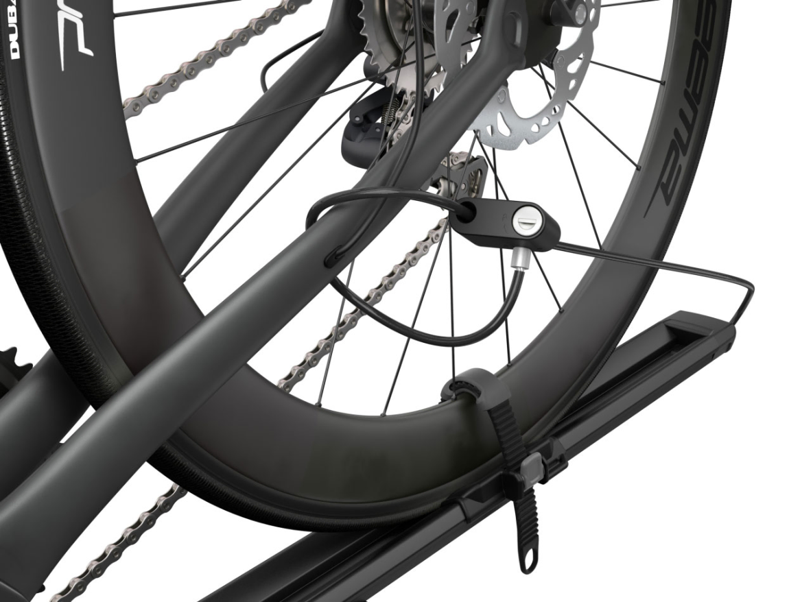 Thanks to a Thule AcuTight torque limiter knob that clicks optimal torque is reached the FastRide is a safe transport option for quick release bikes. Adjustable protective wheel straps hold the rear wheel in place, while the front mounts standard (9mm) quick release bikes and can fit thru-axle bikes with an additional adaptor.