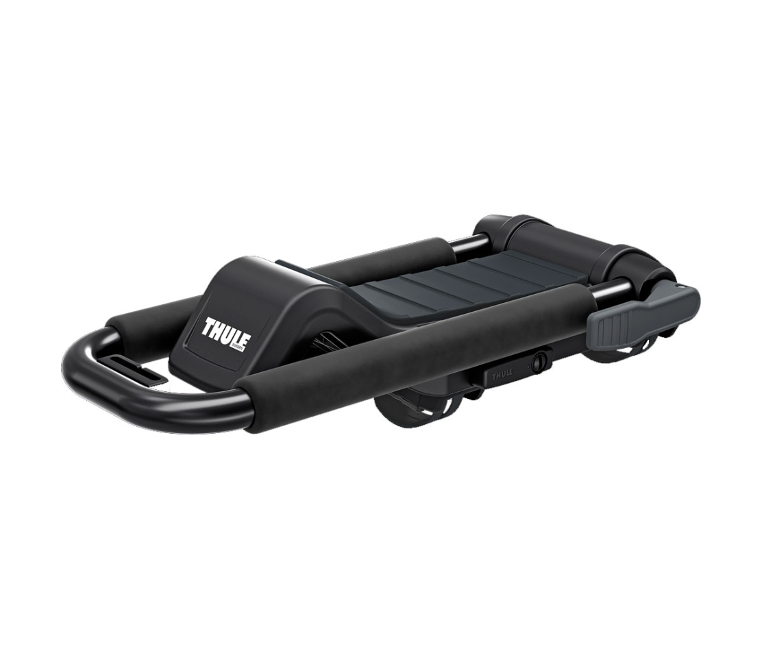 The Thule Hull-a-Port XTR is a folding J-Cradle style kayak carrier that will also allow a kayak to be stacked off the back of it.