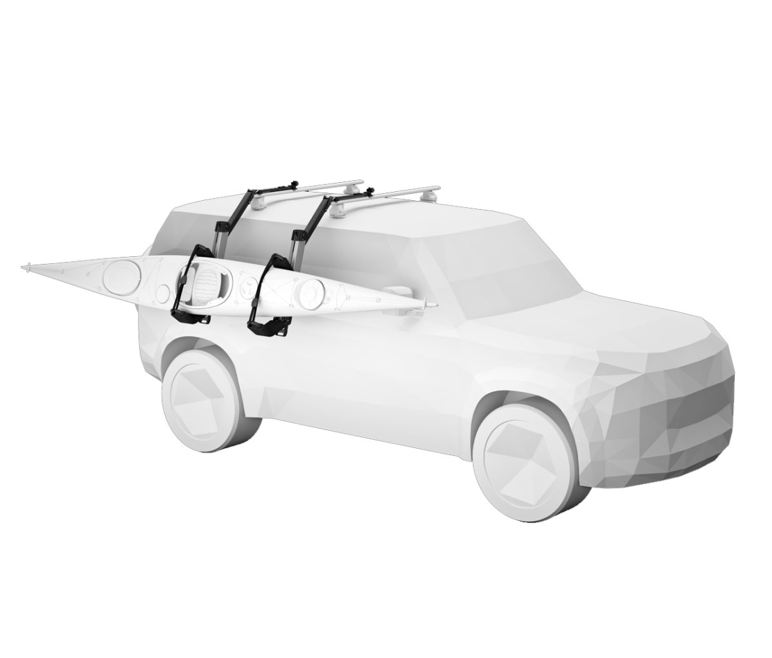 This carrier is designed to work with Thule T-Track rails only and is supplied with Thule QuickDraw bow and stern tie-downs for transporting 1 kayak.